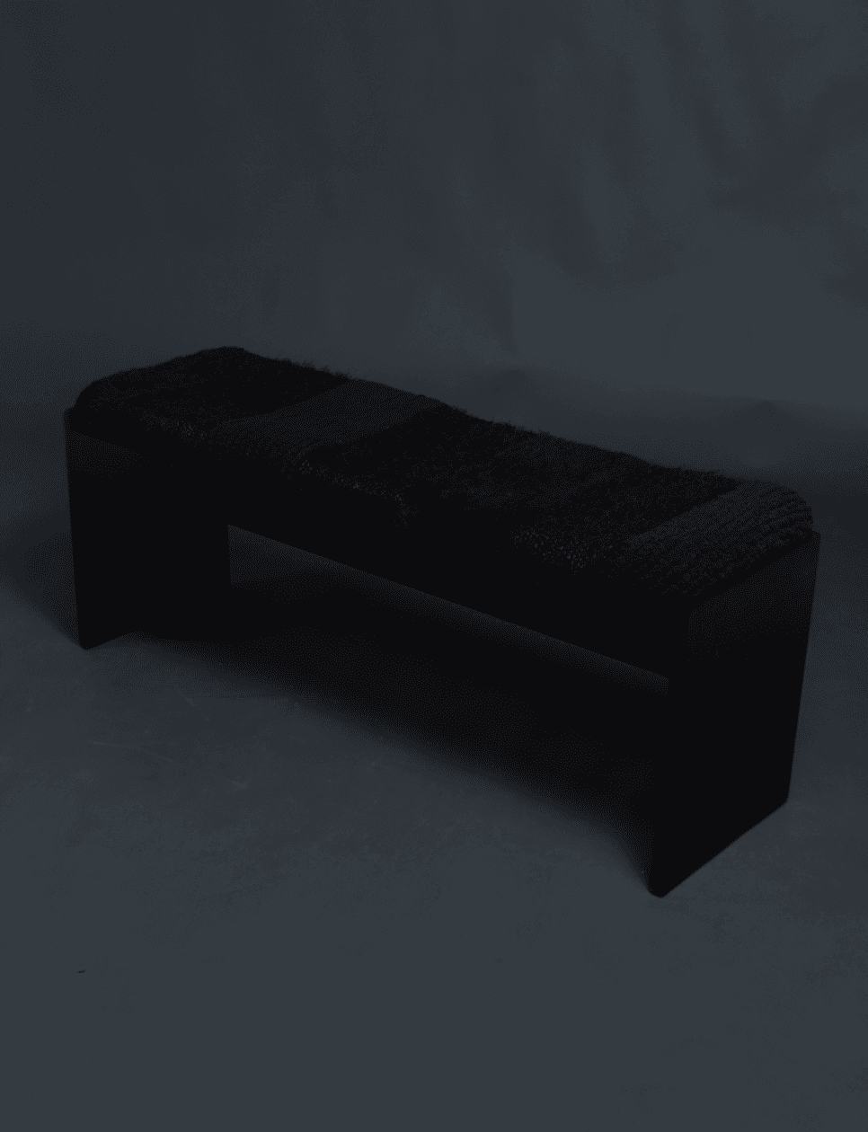 Penumbra es una pieza de mobiliario interior inspirada en el universo visual de Abigail Ahern, reconocida por su estética audaz, oscura y profundamente táctil. El proyecto se materializa en un pie de cama tipo taburete, cuya tapicería fue elaborada completamente a mano en telar de dos marcos, fusionando artesanía textil con un enfoque interiorista ecléctico. La pieza explora la relación entre luz y sombra, entre presencia y contemplación, generando un objeto que transforma el espacio desde la atmósfera y la textura.